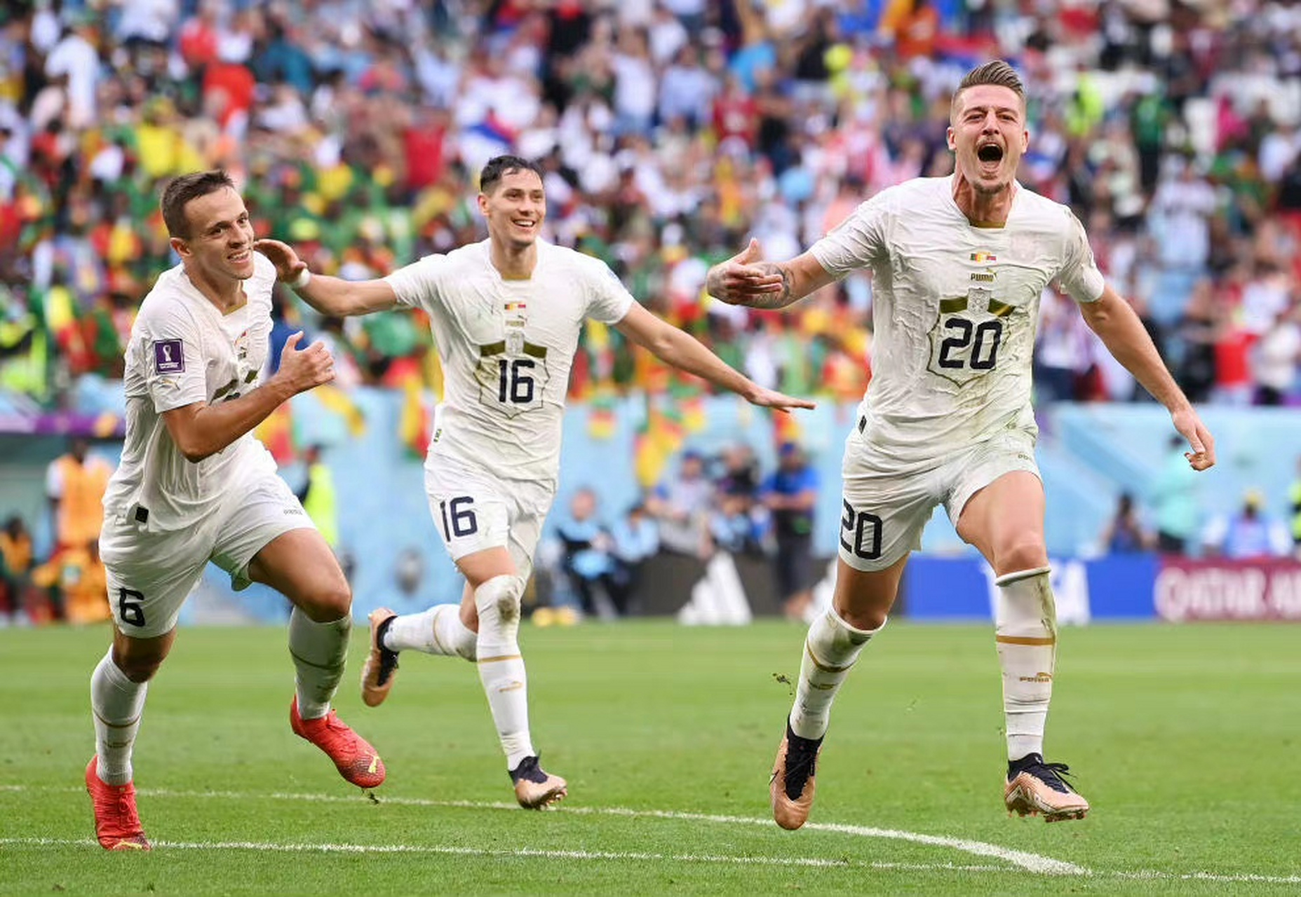 庆祝队友卡斯特列托进球 图新华社落后的塞尔维亚大举进攻,上半场伤停补时阶段,利用对手的防守松懈,接连觅得良机先是帕。